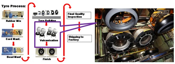 輪胎將在超過 100 攝氏度的高溫下,根據(jù)尺寸不同,硫化時間不等。當(dāng)機器打開時,輪胎將從模具中滾出,并通過長長的傳送帶送往最終檢驗。