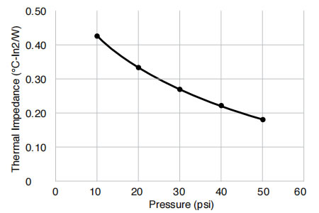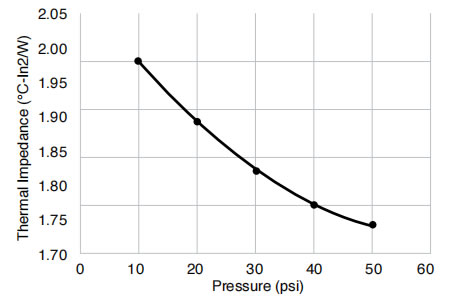 物理性能 試驗結(jié)果 試驗方法 顏色 綠色 目視 厚度 10-100 mil(0.25-2.5mm) ASTM D374 硬度(肖氏OO級) 60 ASTM D2240 體積電阻率(Ω·cm) >4.0x1012 ASTM D257 導(dǎo)熱率(W/m·K)@20psi 1.13 ASTM D5470 絕緣擊穿電壓(VAC) >4.5kV ASTM D149(1 類) 阻燃性 V-0 UL94 基體聚合物 硅橡膠 - -